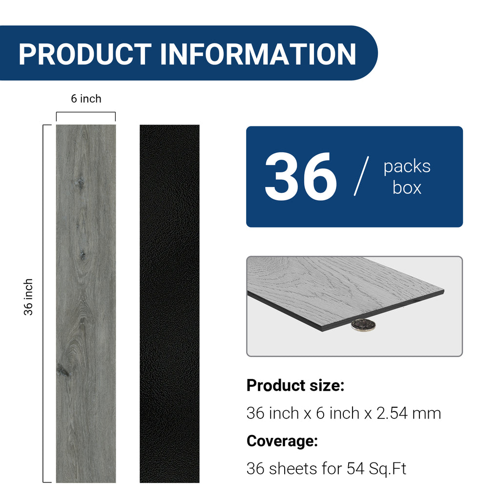 Dusk Gray -DRY BACK 250 Laminate Floor Planks Waterproof Self Adhesive Wood Look Hard Core Tile 36''x6''
