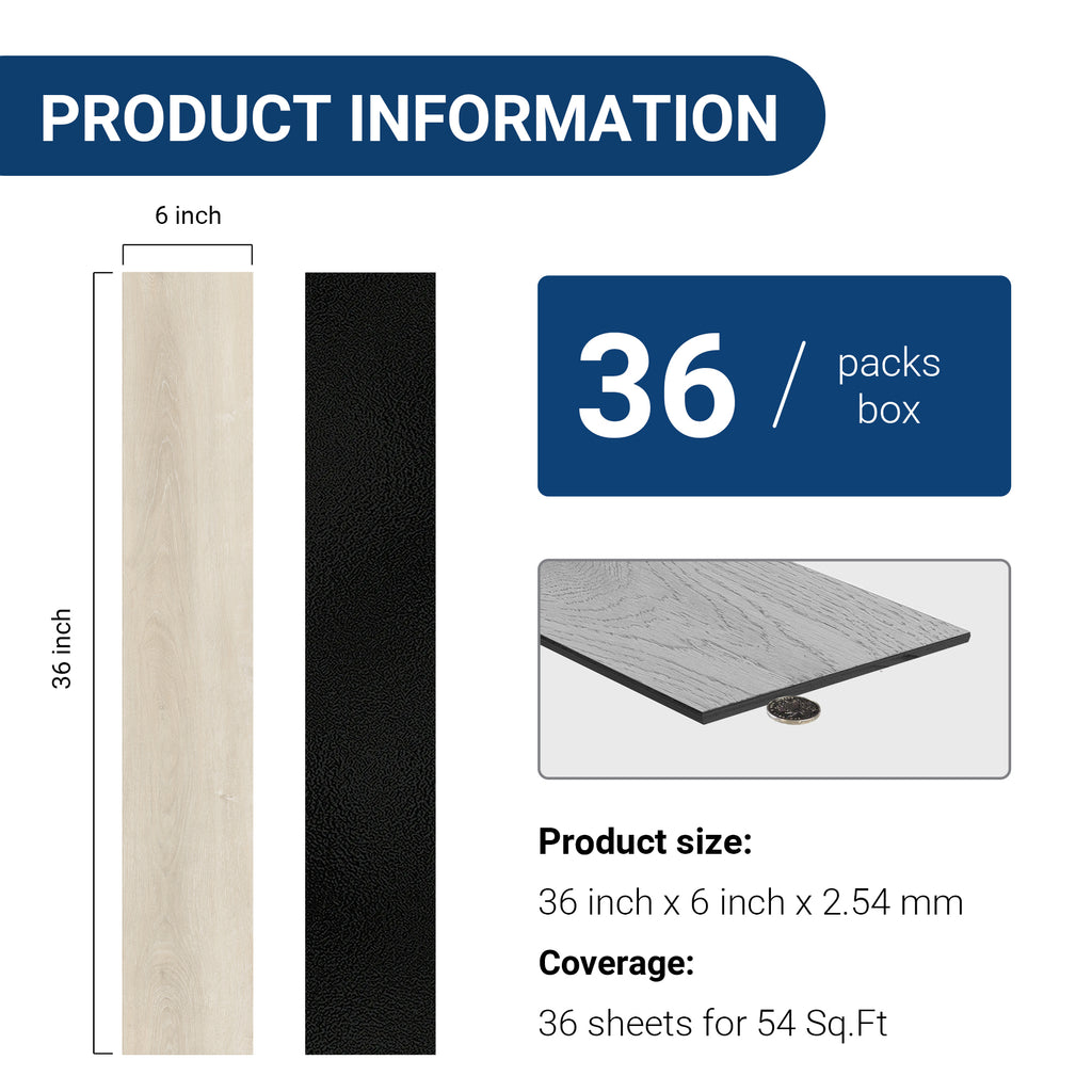 Whitewashed Light -DRY BACK 250 Laminate Floor Planks Waterproof Self Adhesive Wood Look Hard Core Tile 36''x6''