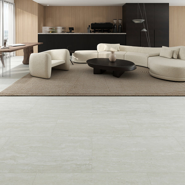 PLANET TILE offers the elegance of natural stone in an affordable, easy-care, 100% waterproof luxury vinyl tile. With its long, linear striations and muted grey and griege tones, this marble look tile gives your project a sense of sophistication that's always on trend. It's suitable for any grade level and multiple applications, so you can use it throughout your home to create a cohesive aesthetic. From the main living area to the master bath and beyond, this kid and pet proof LVT flooring stands up to heavy traffic while also being slip-resistant and quiet under foot.