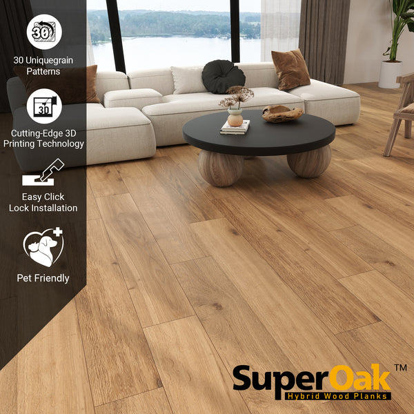 SUPEROAK LITE – 9.5mm Hybrid Wood Plank | Boundless Pattern | 100% Waterproof | Cutting-Edge 3D Printing Technology | 30 Pieces