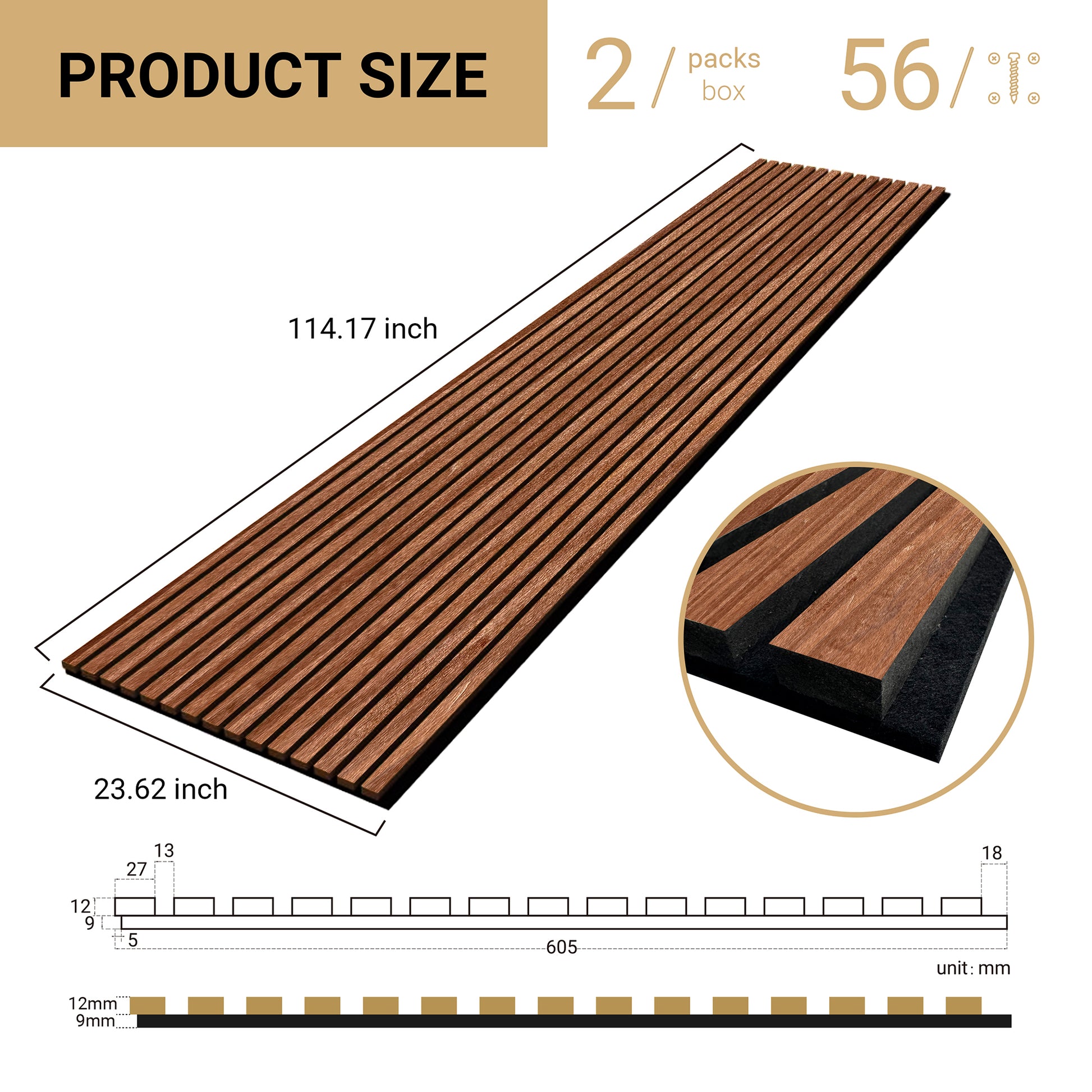 RED CHERRY CLASSIC -Wood Acoustic Wall Panels 114.17‘’×23.62‘’