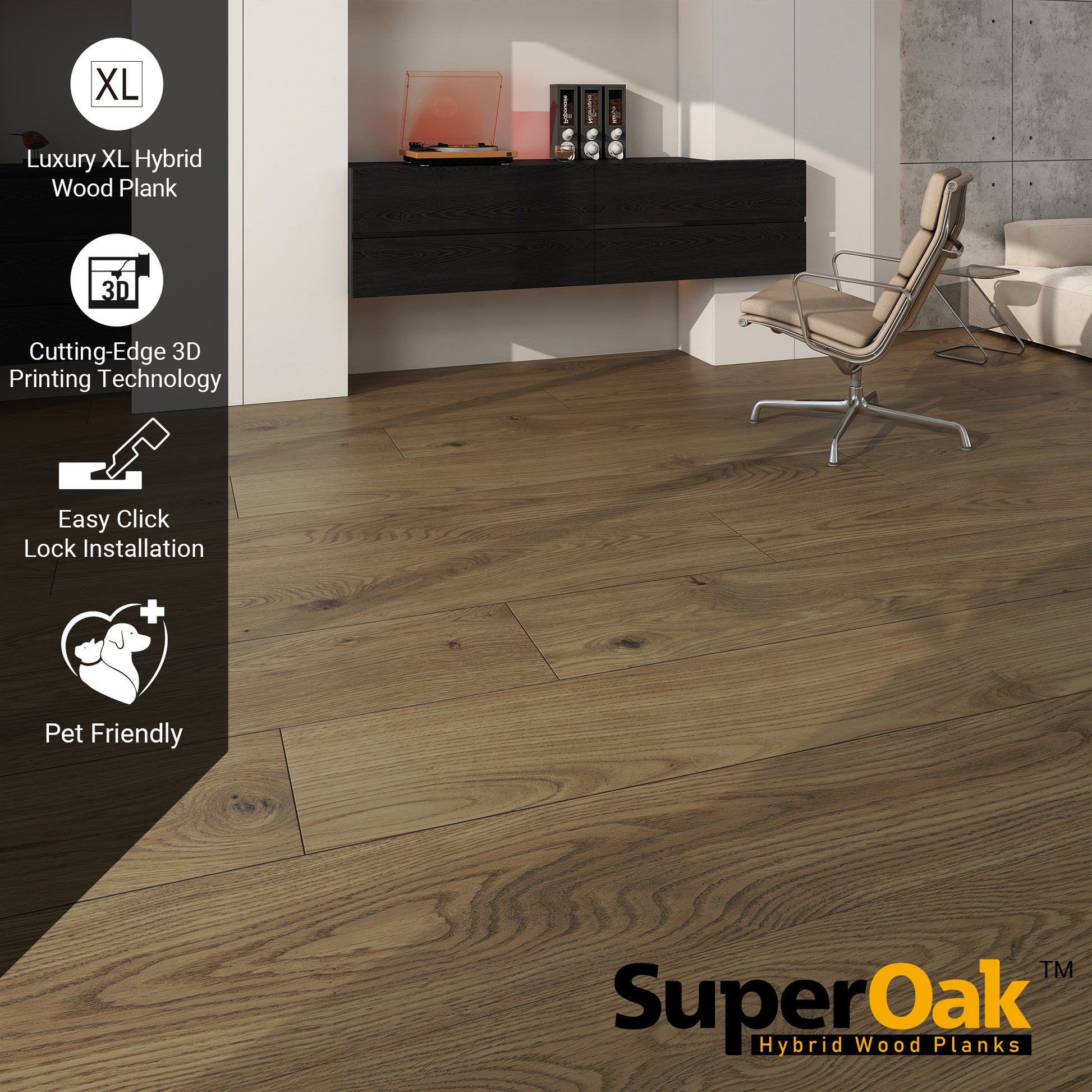Simple Brown - SuperOak Plus 12mm Hybrid Wood Plank 72.7"*9.8"